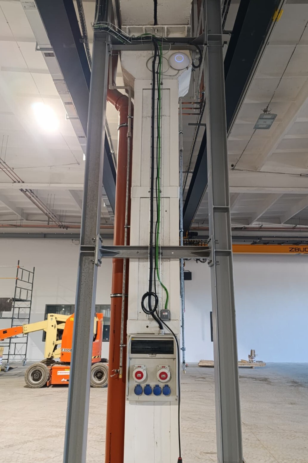Z przyjemnością informujemy o zakończeniu zaawansowanych prac elektroinstalacyjnych i teletechnicznych na hali produkcyjnej W1 firmy